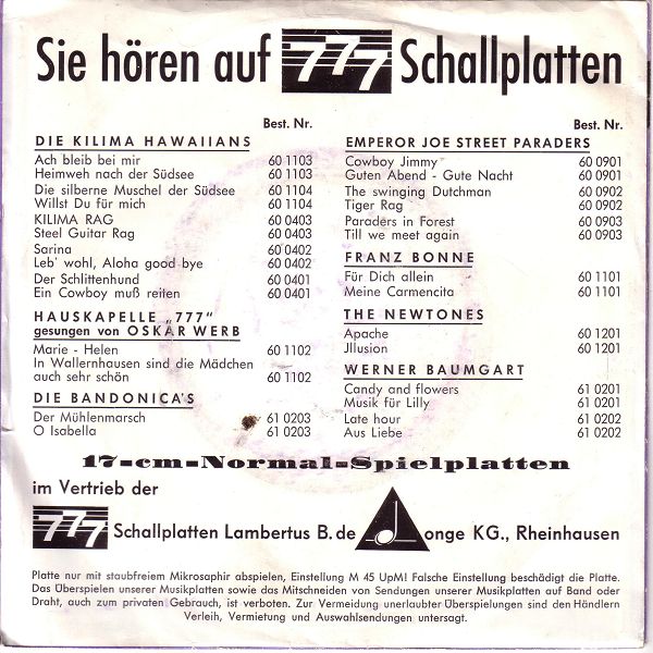 ?? 61....Sch 61 0201....Es spielen Werner Baumgart's Music Mixer..Candy and flowers/Musik für Lily
