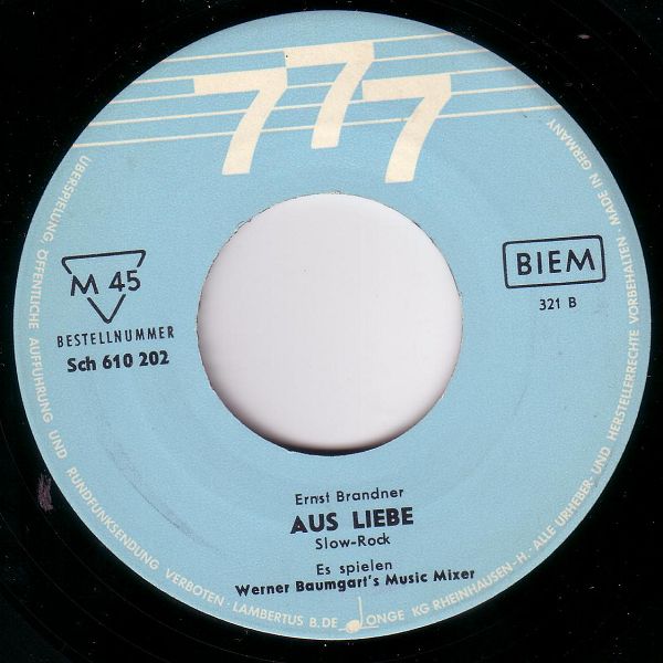 ?? 61….Sch 61 0202….Es spielen Werner Baumgart's Music Mixer..Late Hour (321 A)/Aus Liebe (321 B)