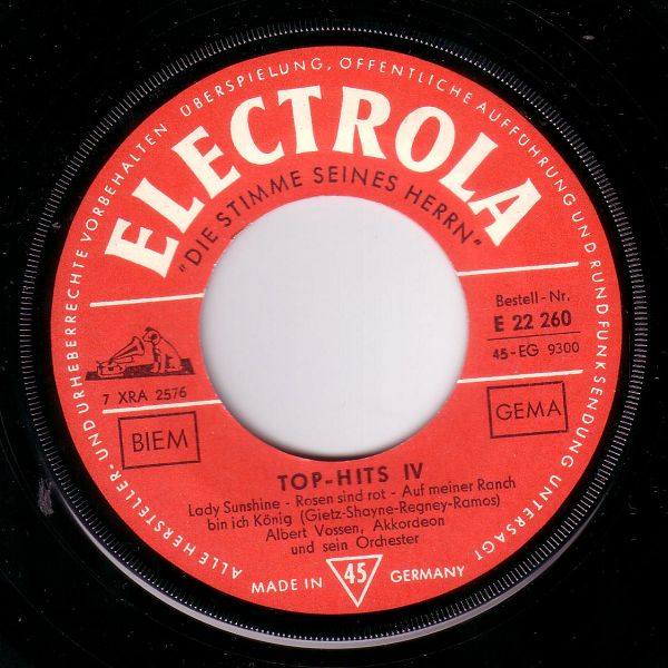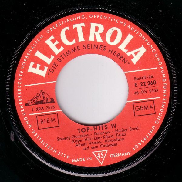10 62....E 22 260....Albert Vossen, Akkordeon und sein Orchester..TOP-HITS IV Speedy Gonzales - Paradiso - Heißer Sand/Lady Sunshine - Rosen sind rot - Auf meiner Ranch bin ich König