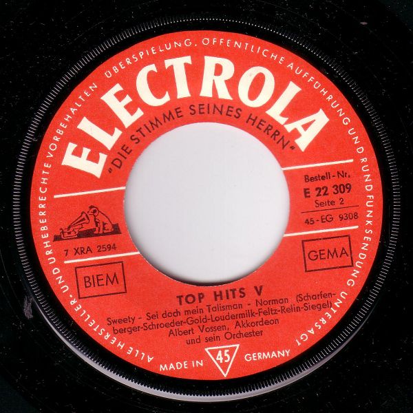 06 62....E 22 167....Albert Vossen und sein Top-Hit Orchester..Zwei kleine Italiener/Eine Rose aus Santa Monica