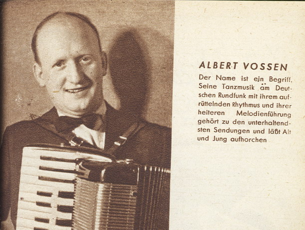 Der Jazz-Akkordeonist, Bandleader und Komponist Albert Vossen wurde am 22. Mai 1910 in Aachen geboren und verstarb am 10. August 1971 in Köln.