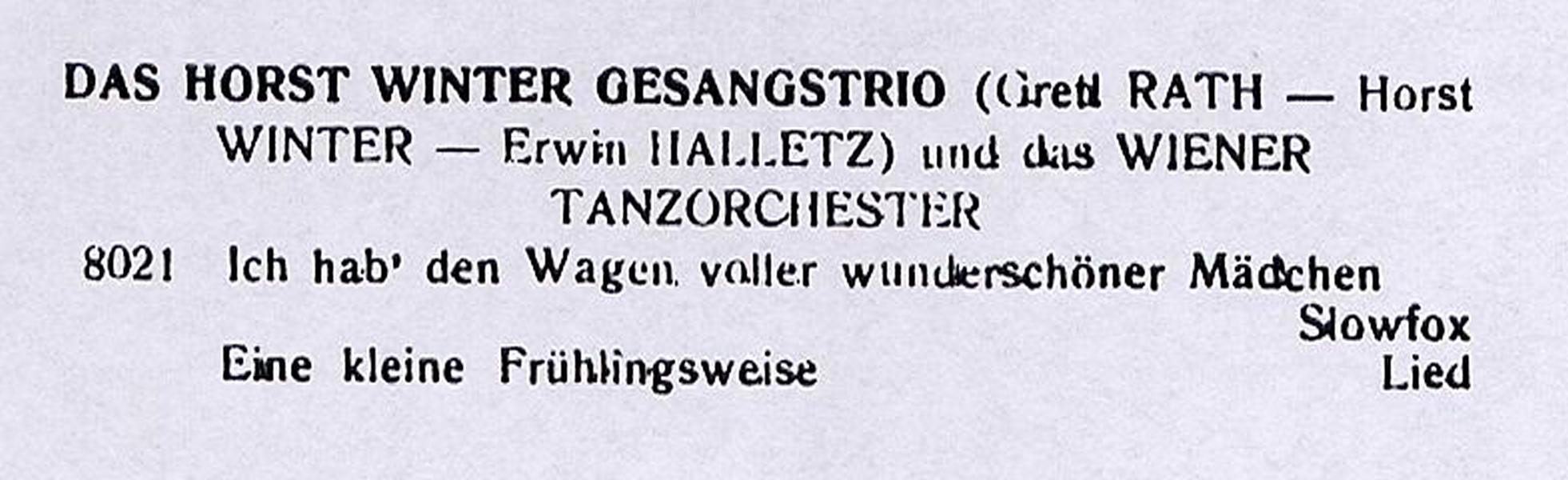 Mitglied im HORST WINTER GESANGTRIO (& HORST WINTER u. GRETL RATH),