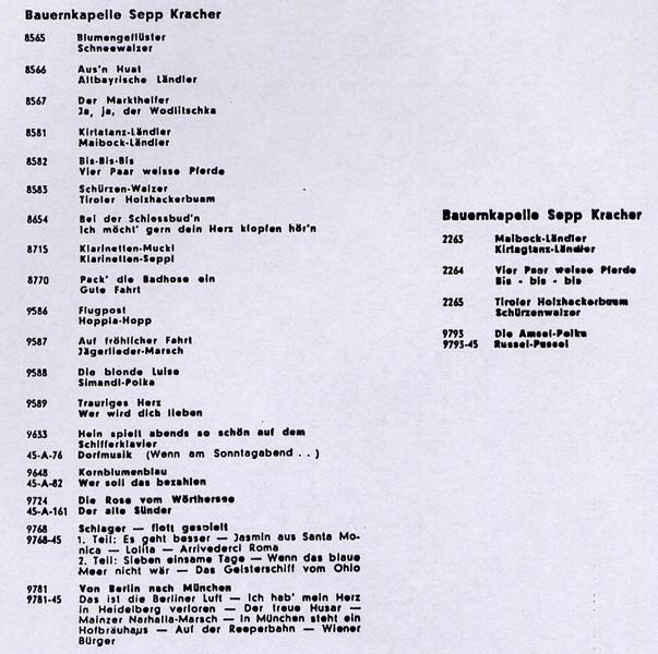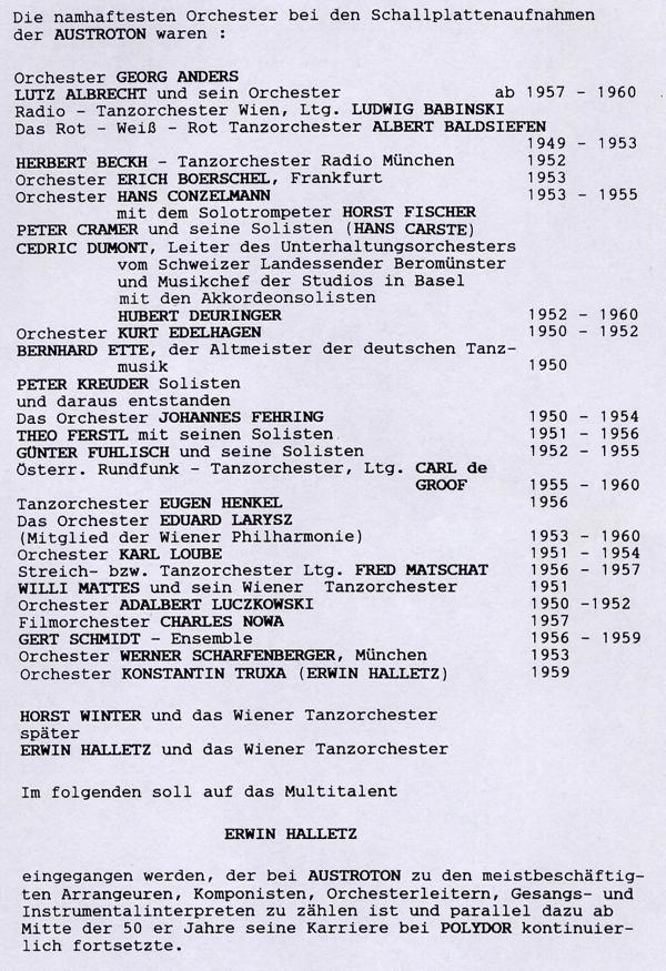 eigene Orchesterformationen bis ca. 1960 für Austrophon u.a. Das Österreichische Rundfunk-Tanzorchester, Das Große Wiener Tanzorchester o. die Bauernkapelle SEPP KRACHER,