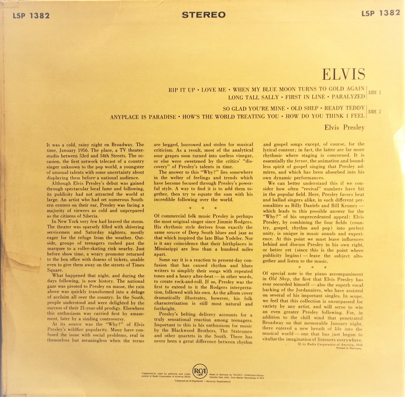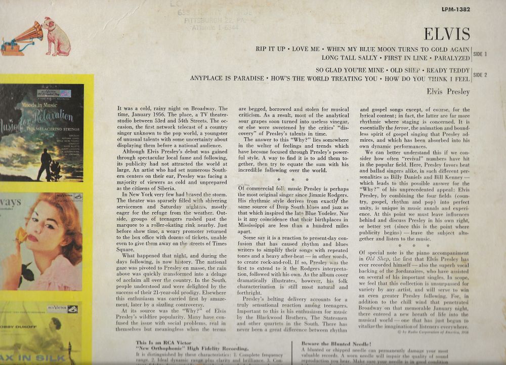 | Information: | ELVIS PRESLEY RCA VICTOR LP LPM-1382 |