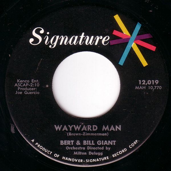 Mark Records (als ´Ethan Giant´) und später für Signature Records (Bert & Bill Giant).