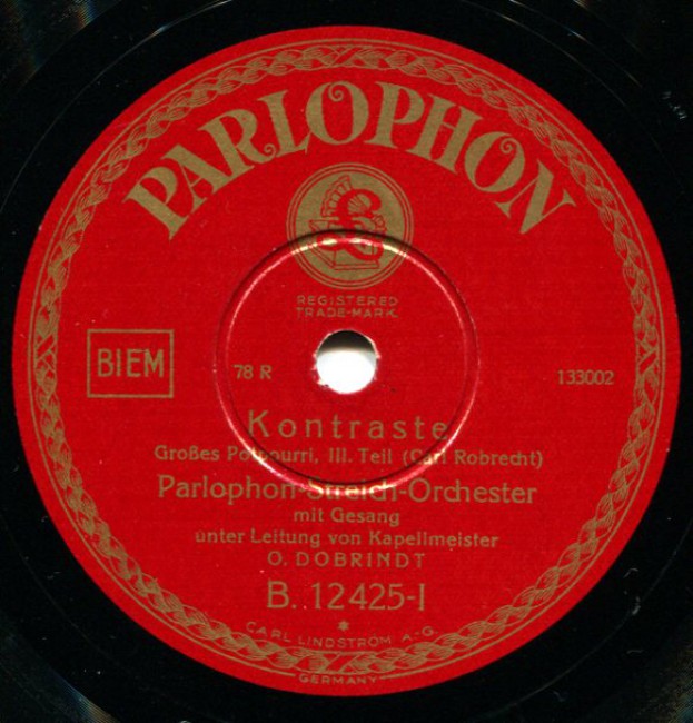 1925 Lindström-Odeon, auf jeder zweiten blau- oder rotetikettierten Odeon-Schallplatte ist der Kapellmeister vertreten,