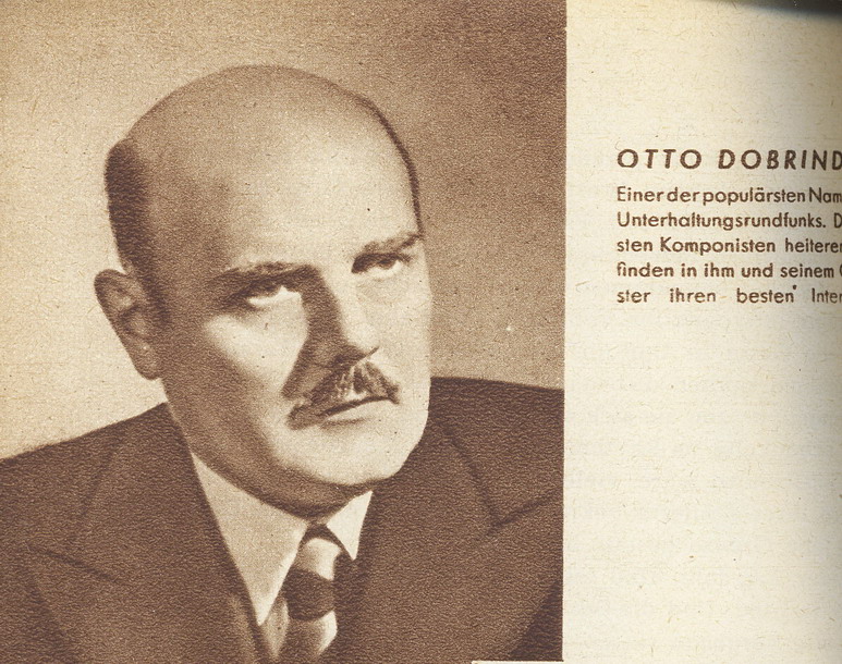 OTTO DOBRINDT dirigiert alles, was ihm vor den Taktstock kommt u. alles nach nur kurzer Probenzeit, auch dazu ist der gewisse militärische Drill erforderlich-viele seiner Musiker nennen ihn "den schwarzen Mann",