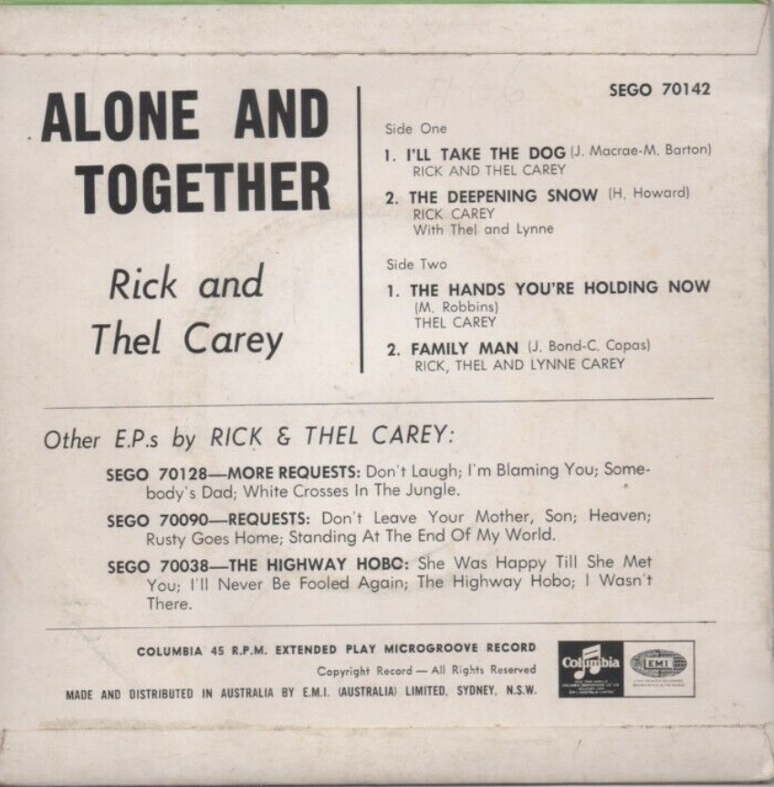 Schließlich erhielt Frank einen weiteren wichtigen Durchbruch durch das Country-Musik-Ehepaar Rick & Thel Carey. Die Careys waren damals sehr groß und hatten großen Einfluss. Sie waren es, die Frank in Sydney eine Einführung in die Musik des Südens gaben, und diese Einführung führte dazu, dass Frank 1953 ein Plattenkünstler für Regal Zonophone wurde.