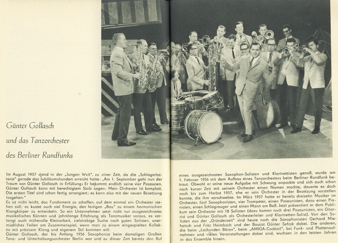 am 01.02.1956 übernimmt GÜNTER GOLLASCH einen Teil der Musiker, die sich aus der Teilung des Tanz- und Unterhaltungsorchester des Berliner Rundfunks anboten,