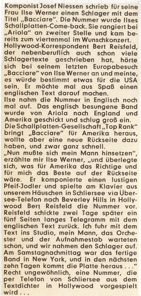 freischaffender Komponist u.a. "Aber Mein Hans, Der Kann’s"-1949, "Baciare"-1960, "Nachts In Rom"-1960,
