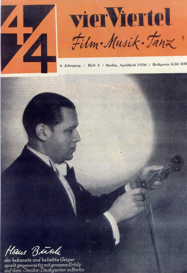 1933 als "jüngster Rundfunkkapellmeister" Deutschlands beim Deutschlandsender u. Gründung des Tanzorchester HANS BUSCH (13 Musiker u.a. HORST KUDRITZKI-p, arr, HORST HOFFMANN-acc, arr, HELMUT RITTER),