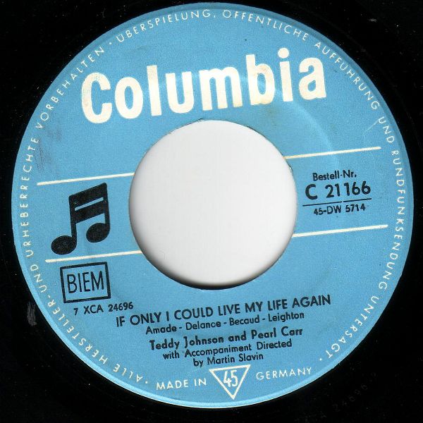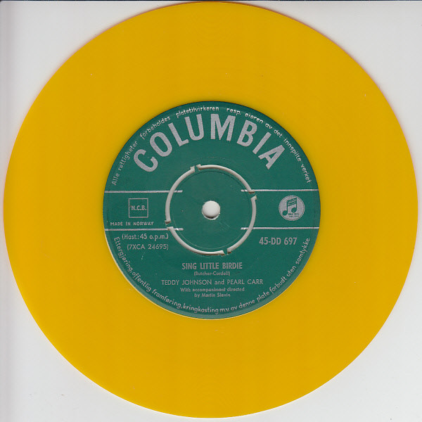 03 59....45-DB 4275....TEDDY JOHNSON & PEARL CARR with Accompaniment directed by Martin Slavin..Sing Little Birdie (7XCA 24695)/If Only I Could Live My Life Again (7XCA 24696)
