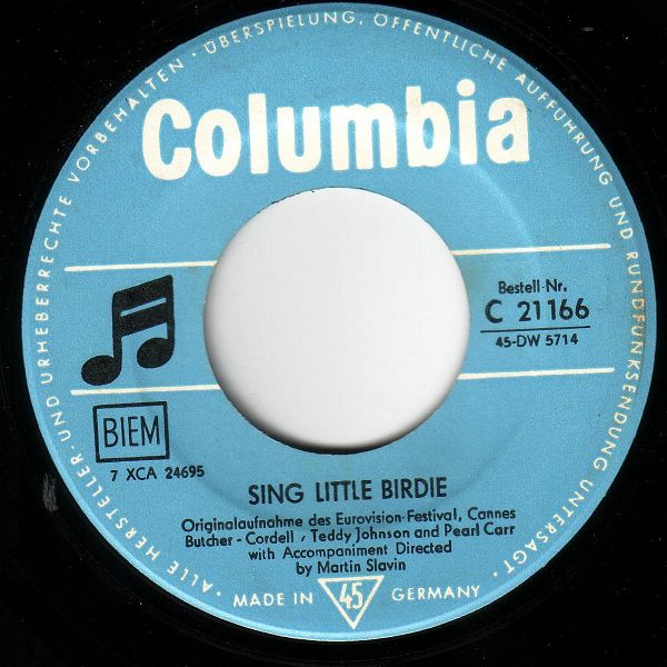 04 59....C 21 166....Teddy Johnson and Pearl Carr with Accompaniment Directed by Martin Slavin..Sing Little Birdie/Teddy Johnson and Pearl Carr with Accompaniment Directed by Martin Slavin..If Only I Could Live My Life Again (UK: COLUMBIA 4275)