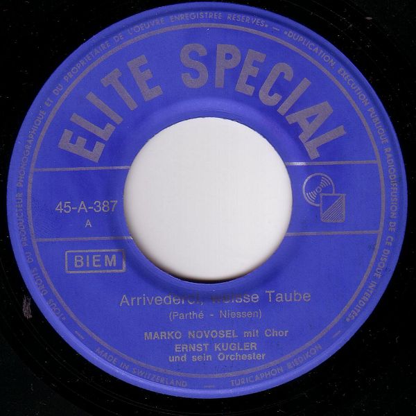 09 62....45-A-387....MARKO NOVOSEL mit Chor ERNST KUGLER und sein Orchester..Arrivederci, weisse Taube (A)/Vergessen (B)