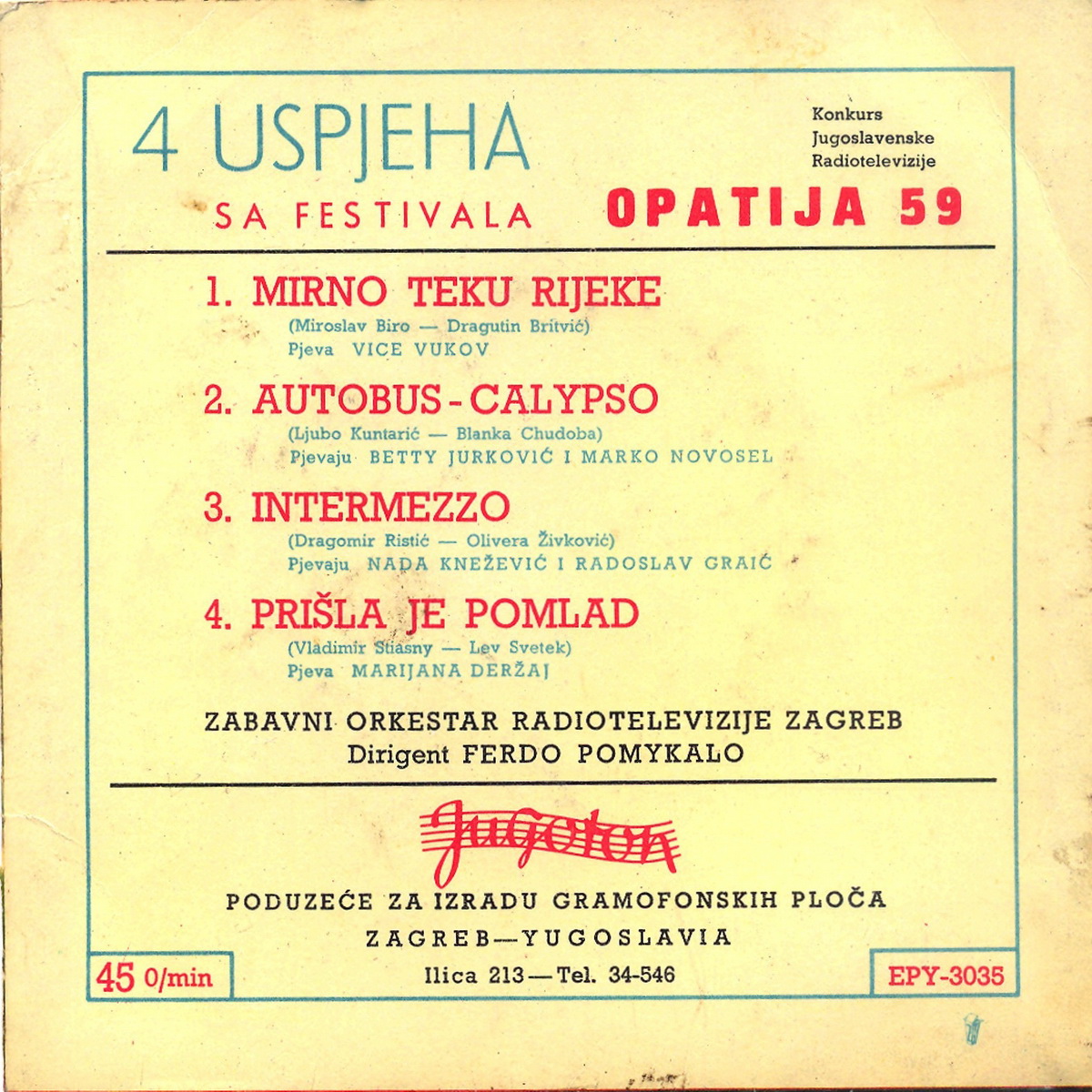 ?? 60….AVRS 21183 A….MARKO NOVOSEL Ernst Kugler und sein Orchester..Festa di Fiori a Taormina/ B….Elena Rosa