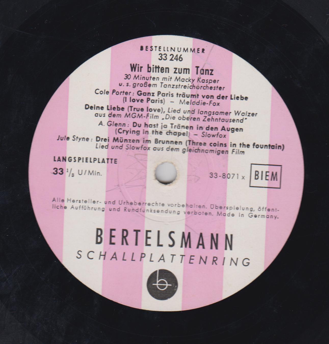 seit 1955 Aufnahmen für Bertelsmann-u.a. Das Bunte Tanzorchester unter der Leitung von MACKY KASPER o. MACKY KASPER (Trompete) mit dem Bunten Tanzorchester (u.a. "Pfeifmarsch aus "Die Brücke Am Kwai" Colonel Bogey"-1958, "Sail Along Silvery Moon"-1958) u. Begleitorchester für diverse Gesangsolisten,