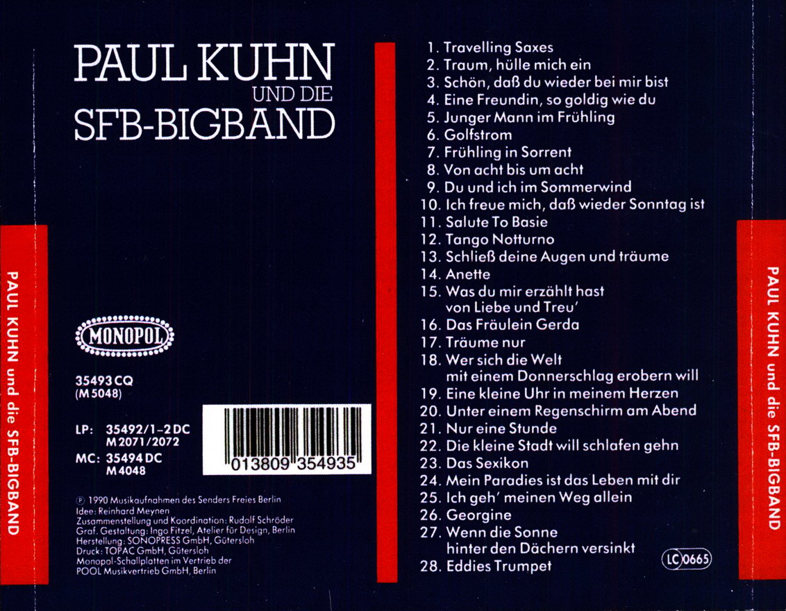 1955 PAUL KUHN ENSEMBLE (PAUL KUHN-p, ld, u.a. FRITZ WEICHBRODT-tp, HEINZ KRETZSCHMAR-cl, KARL DREWO-ts, DREK HUMBLE-ts, KURT BECKER-p, JOHNNY FISCHER-b, BUBI ADERHOLD-percussion, bongos, STUFF COMBE-d) auf Electrola/Columbia,