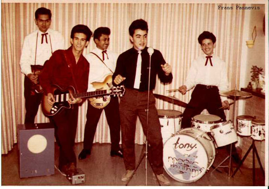 Der Schlagzeuger Tony Moniz, die Gitarristen Emile Schwartz und Oele Berkeely, sowie der Bassist Fer George spielten 1961/62 bei der niederländischen POLYDOR unter dem Gruppennamen Tony And The Magic Rhythms zwei Singles ein, die ich hiemit vorstelle: