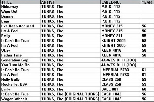 Ab 1963 gab es in Indiana eine Gesangs-Gruppe, die sich auch The Turks nannte, ”Baja” und ”Wipe Out” sind aber Instrumentals.