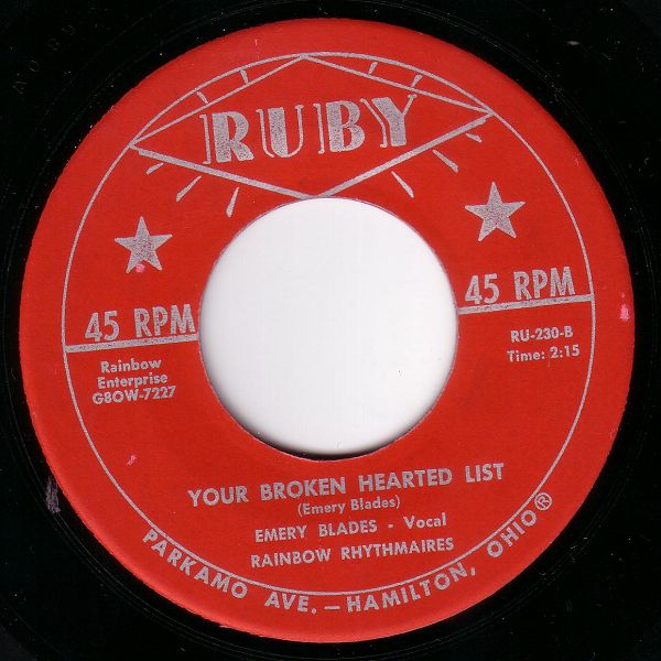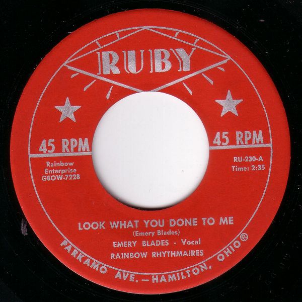 ?? 57....RU-230-A....EMERY BLADES - Vocal RAINBOW RHYTHMAIRES..Look What You Done To Me (G8OW-7228)/-B….Your Broken Hearted List (G8OW-7227)