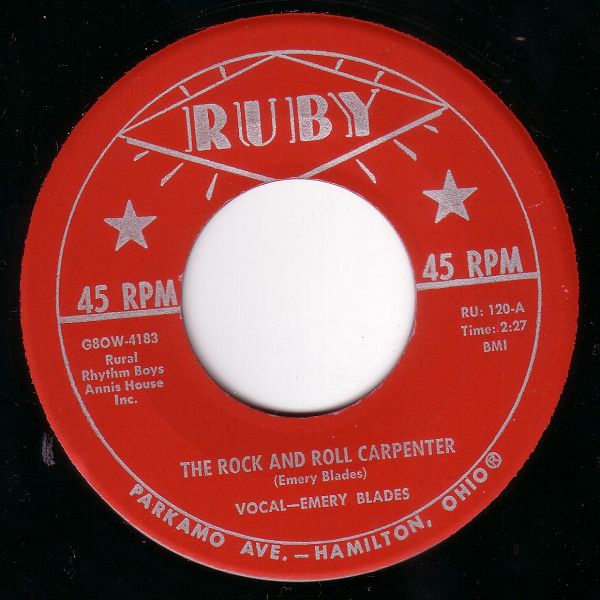 Der Rockabilly-Sänger, Song-Writer und Gitarrist Emery Blades wurde am 3. Juni 1928 in Hamilton, Ohio, geboren. Er wuchs in einer sehr musikalischen Familie auf, wo jeder wenigstens ein Instrument spielte. Als er 1950 Ethelda heiratete begann er sich für das Gitarrespiel und den Gesang intensiver zu interessieren und spielte dann mit Freunden bei privaten Festen und dergleichen auf. Mitte der Fünfzigerjahre begann er auch Lieder zu schreiben. Seinen ersten Song "I'm Leaving You The Key To My Heart" schrieb er für seine Ehefrau, mit der er übrigens noch heute verheiratet ist. Der zweite Song war "The Rock And Roll Carpenter". Als er hörte, dass in Hamilton ein neues Label gegründet wurde nahm er mit dessen Besitzer Larry Short gleich Kontakt auf. Larry gefielen diese Songs und die ersten beiden Stücke die Emery komponierte, wurden für seine erste RUBY-Single eingespielt. Danach gab es noch zwei weitere Single-Veröffentlichungen. Die Titel "Jitterbuggin' Baby" und "Oh, Honey" blieben voerst unveröffentlicht. Da dem RUBY-Label leider das Geld zum Promoten fehlte, konnten lediglich kleine Erfolge im Umkreis von Hamilton erzielt werden.