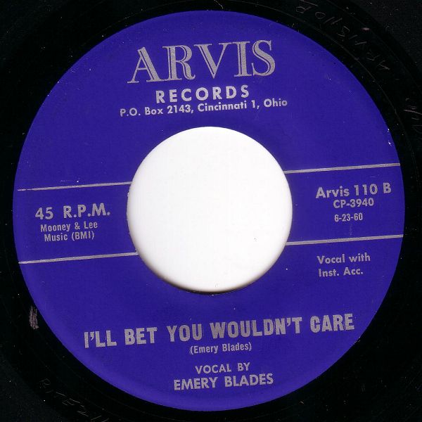 06 60....Arvis 110 A….Vocal By EMERY BLADES..I Feel Like A Million (CP-3939 6-23-60)/ B….I'll Bet You Wouldn't Care (CP-3940 6-23-60)