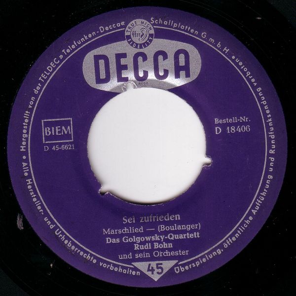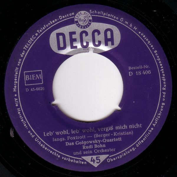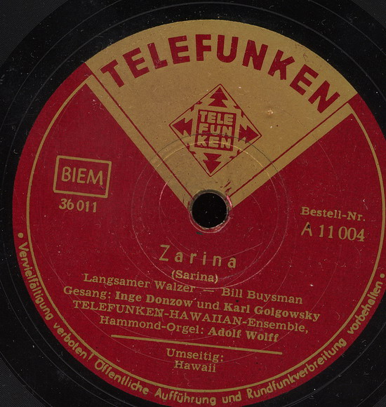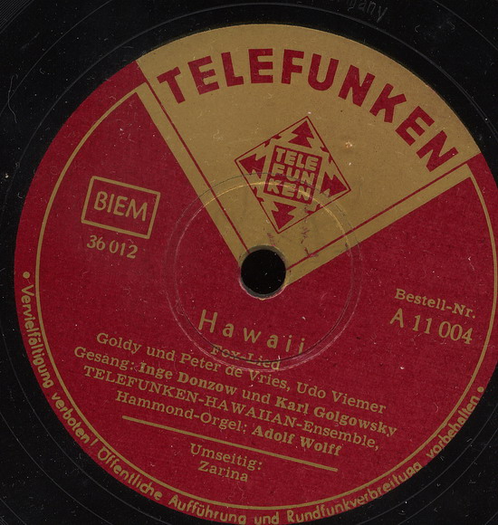 ca. 1951/52 Tefi-Schallband als CARL GOLGOWSKY (u.a. "Das Hat Ja Schon Die Großmama Erfahren", "Die Blauen Matrosen") u. GOLGOWSKY-QUARTETT,