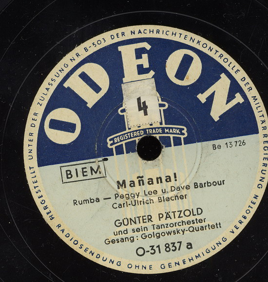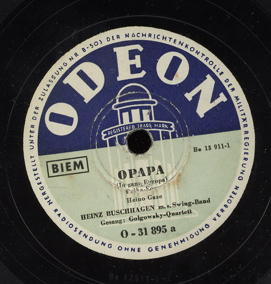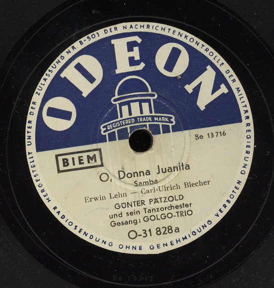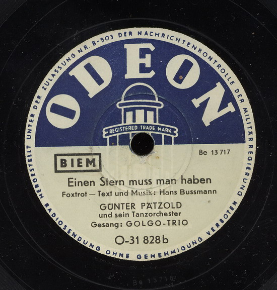 Odeon-Schallplatten (Aufnahmen mit den Orchestern EUGEN WOLFF, HEINZ BUSCHHAGEN, GÜNTER PÄTZOLD ("Am Zuckerhut"), HEINZ MUNSONIUS u. HEINZ HUPPERTZ,