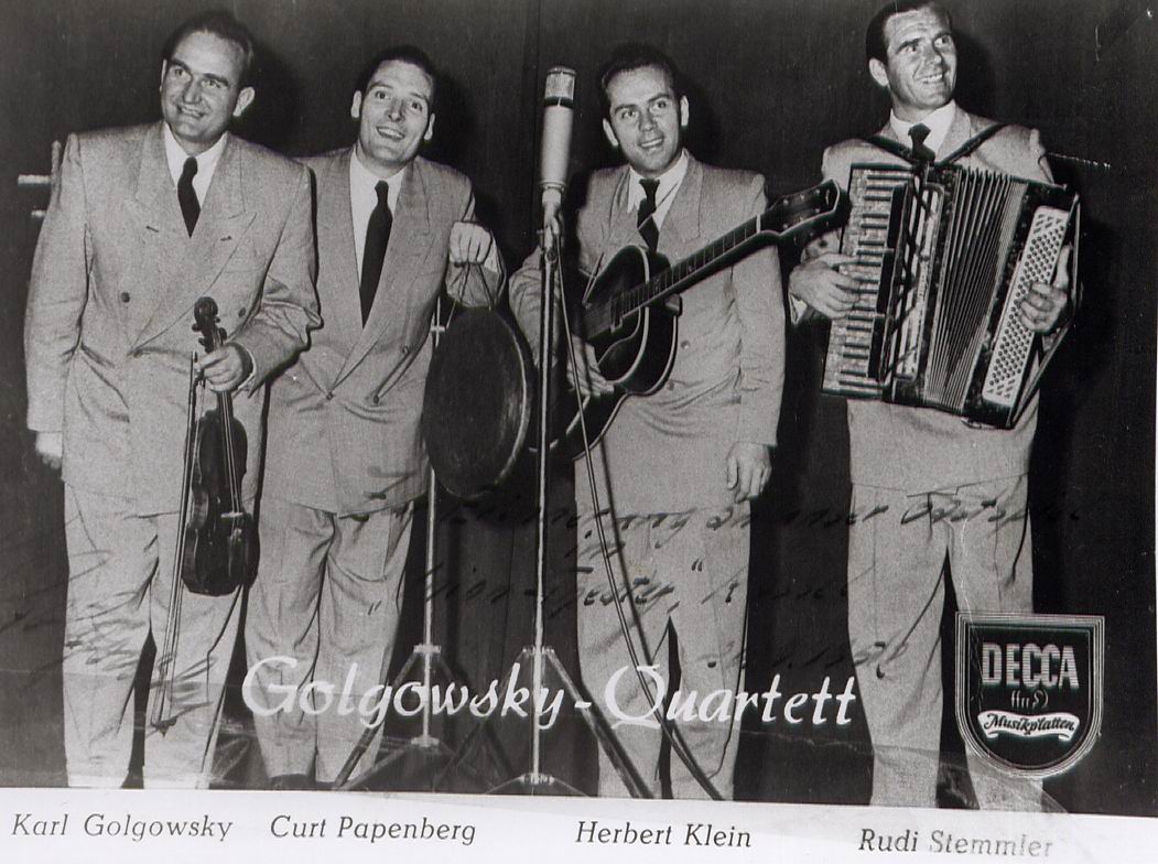 Ur-Formation: KARL GOLGOWSKY-Melodiegesang u. Violine, RUDI STEMMLER-hoher Tenor, Akkordeon, HERBERT KLEIN-2. Tenor, Gitarre (bis 1953), HORST ROSENBERG-Bariton, ersetzt durch CURT PAPENBURG-Baß/Bariton),