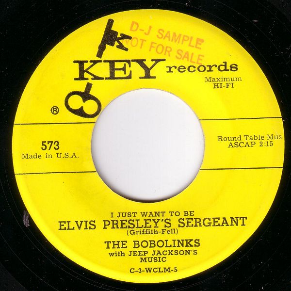 03 57....573....THE BOBOLINKS with JEEP JACKSON'S MUSIC I Just Want To Be Elvis Presley's Sergeant (C-3-WCLM-5)/H….Your Cotton Pickin' Heart (C�4�WCLM-5)