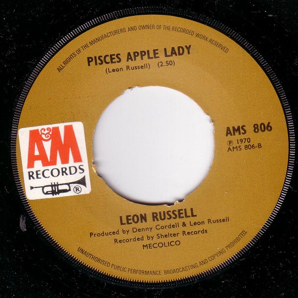 11 70....7302....LEON RUSSELL & THE SHELTER PEOPLE..Home Sweet Oklahoma (45-S65021)/It Takes A Lot To Laugh And A Train To Cry (45-S65022)