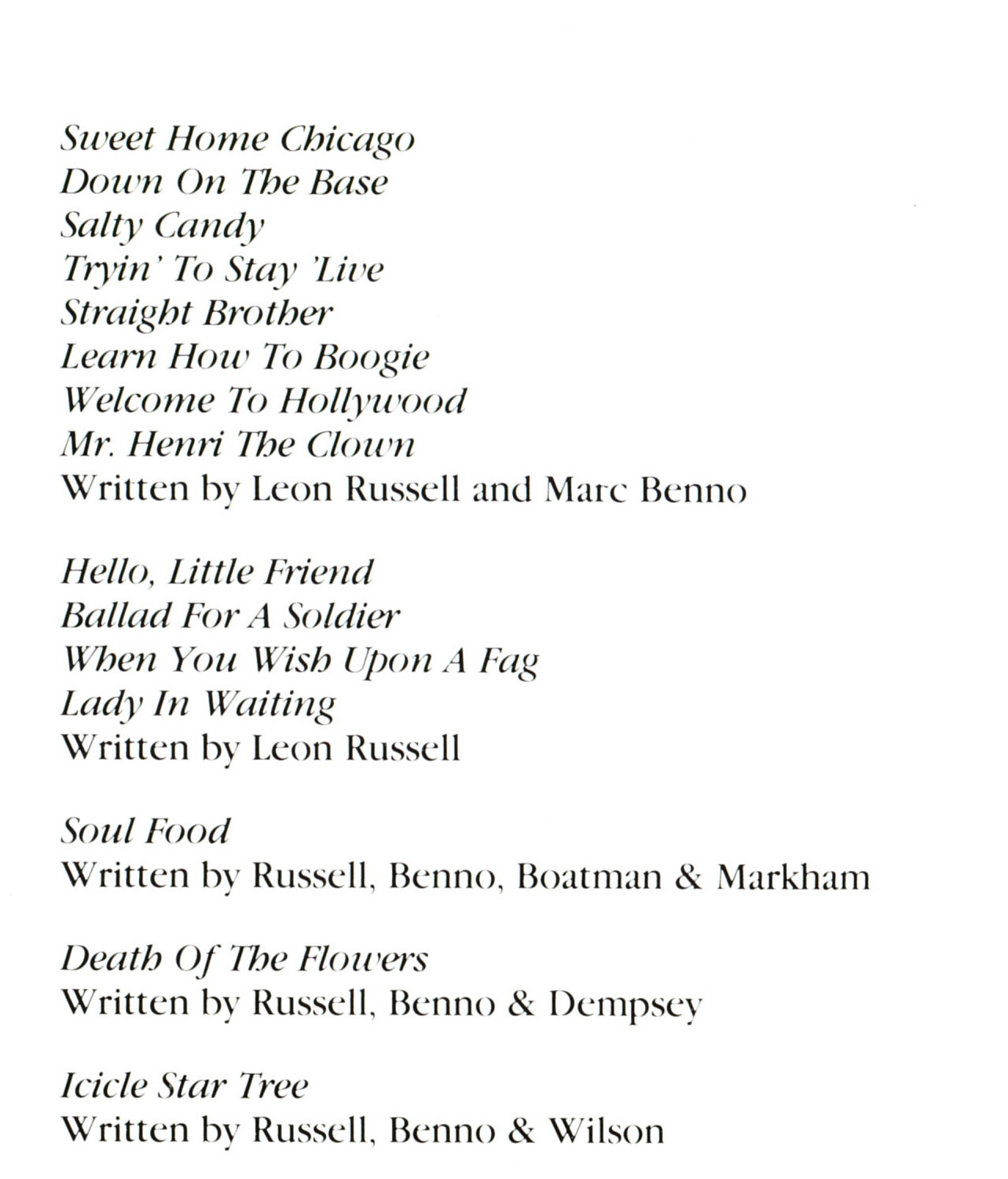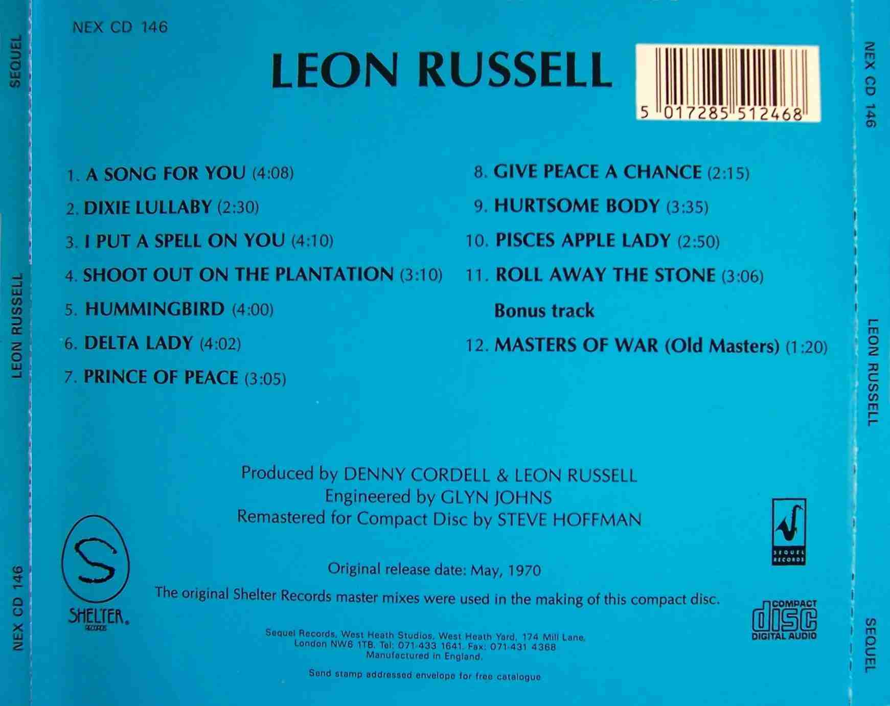 12 75....SR-40483....LEON RUSSELL..Back To The Island (MC4533)/Little Hideaway (MC3816)
