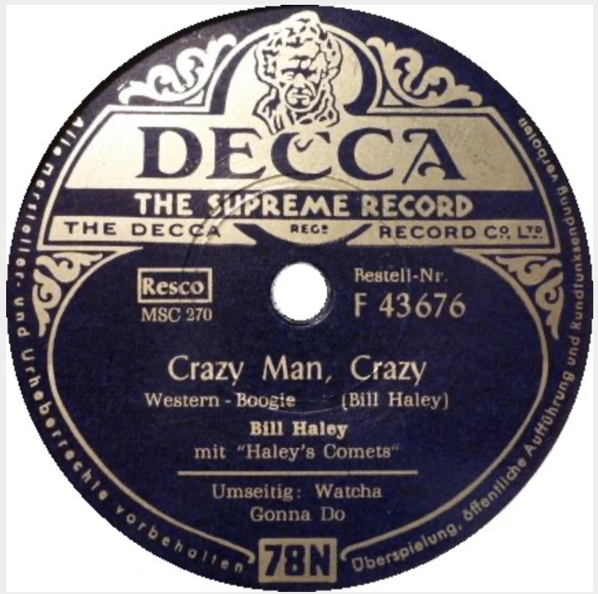 Bill Haley mit "Haley's Comets" - Crazy Man, Crazy / Watcha Gonna Do / Decca F 43676 / BRD Frühjahr 1954