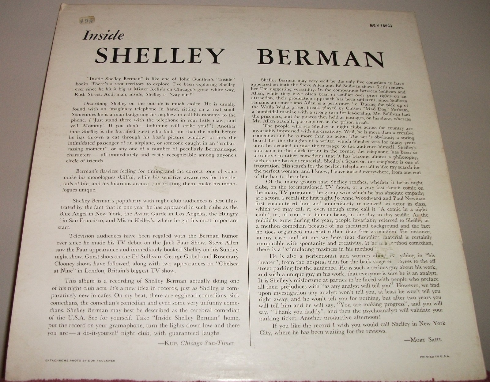 Auch SHELLEY BERMAN hatten wir trotz seines Trubels mit dem Neffen